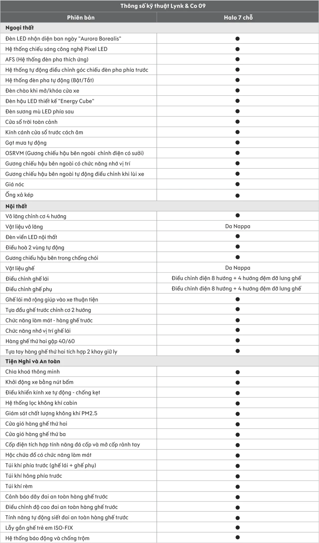 Thông tin chi tiết xe Lynk & Co 09